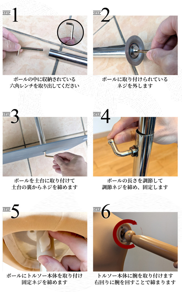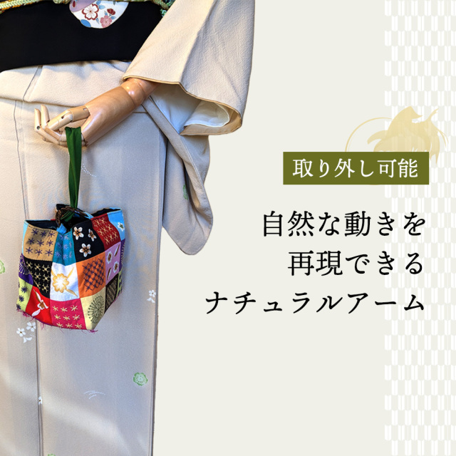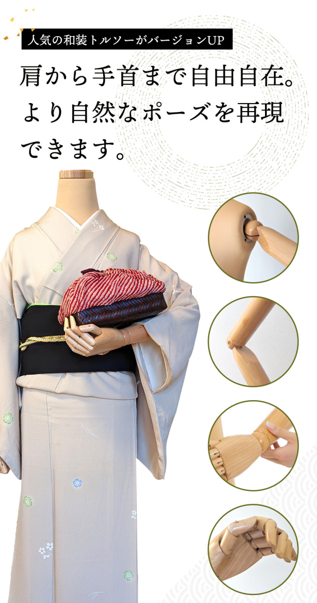 この和装トルソーは、実際の人間に近い構造にこだわり、着付けの動きや感覚を自然に身につけられるよう設計されています。
