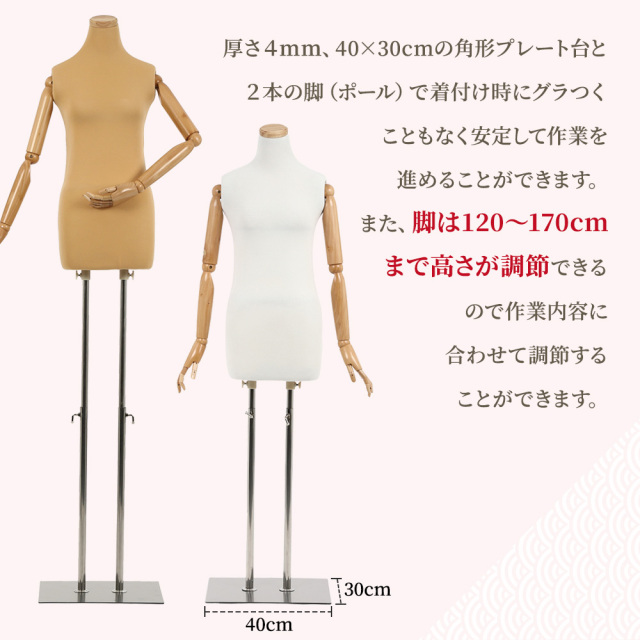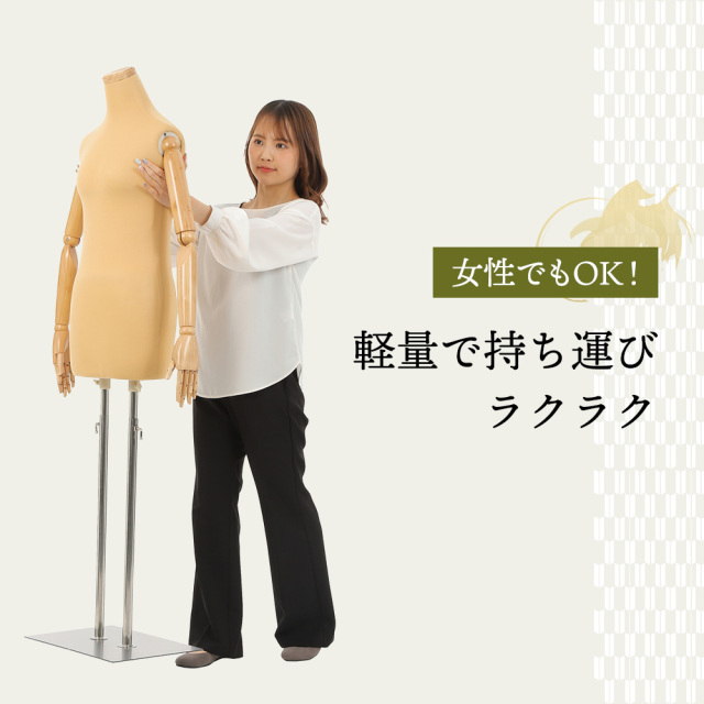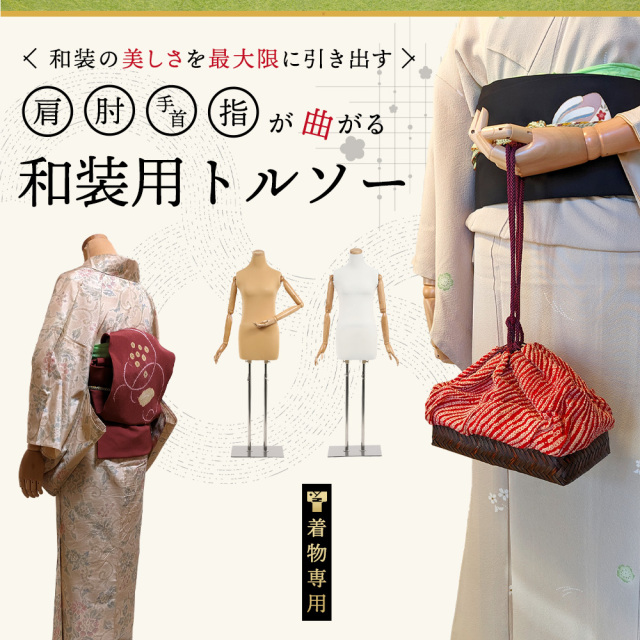 着付け教室のレッスンから、自宅での独学練習まで、幅広く活躍するトルソーです。